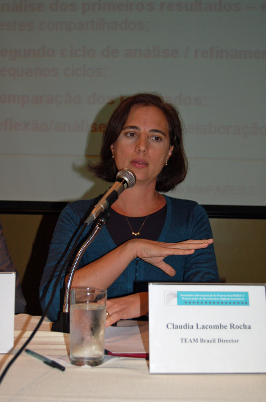Apresentação do estudo "O impacto da cultura organizacional dos campos de teste no processo de pesquisa-ação dos estudos de caso: conclusões preliminares do TEAM Canadá": Luciana Duranti. Apresentação: ip3_isym02_duranti_presentation.pdf